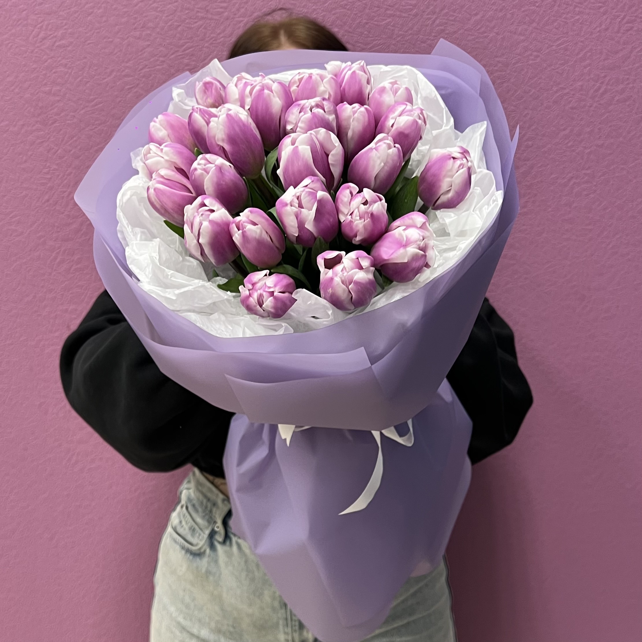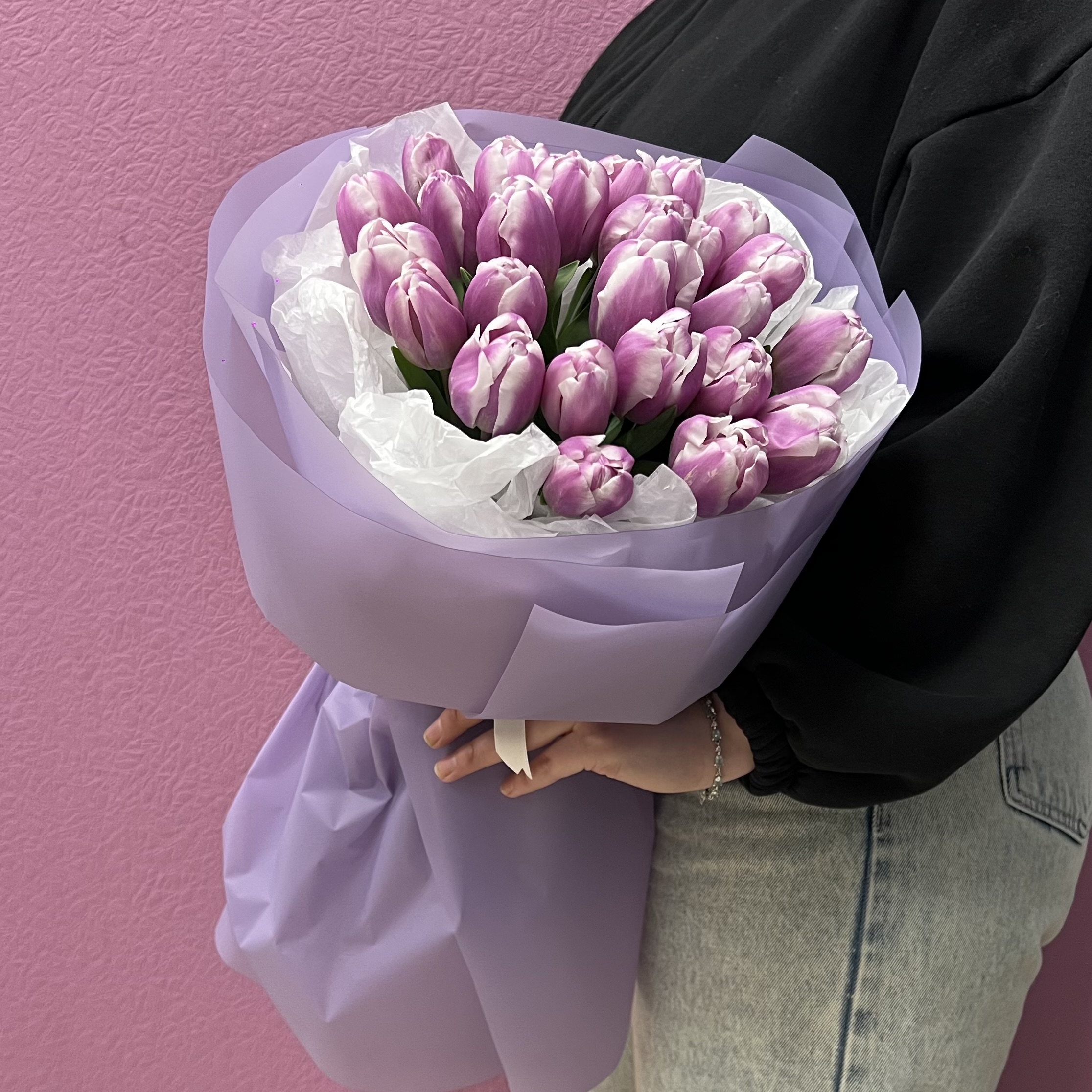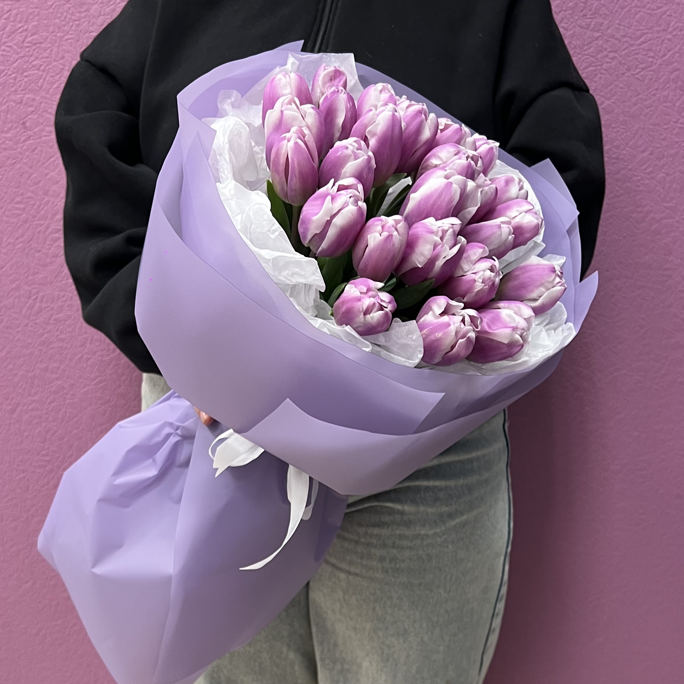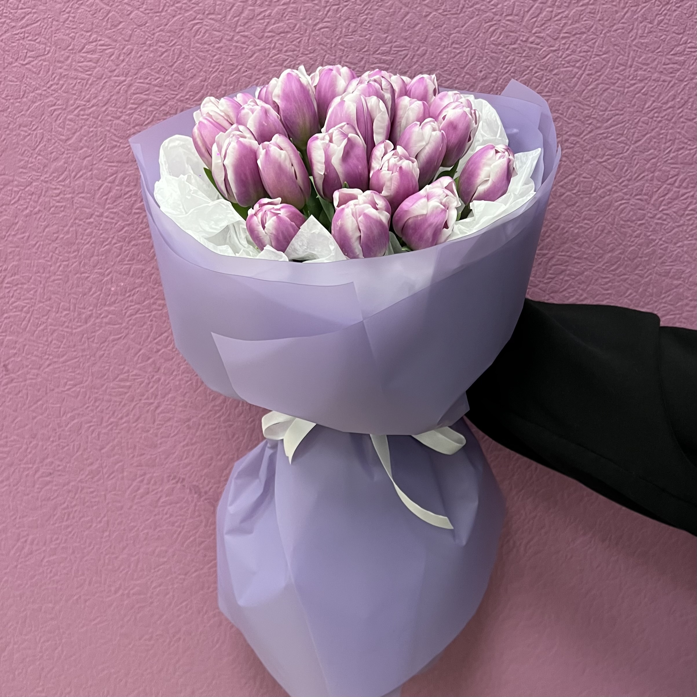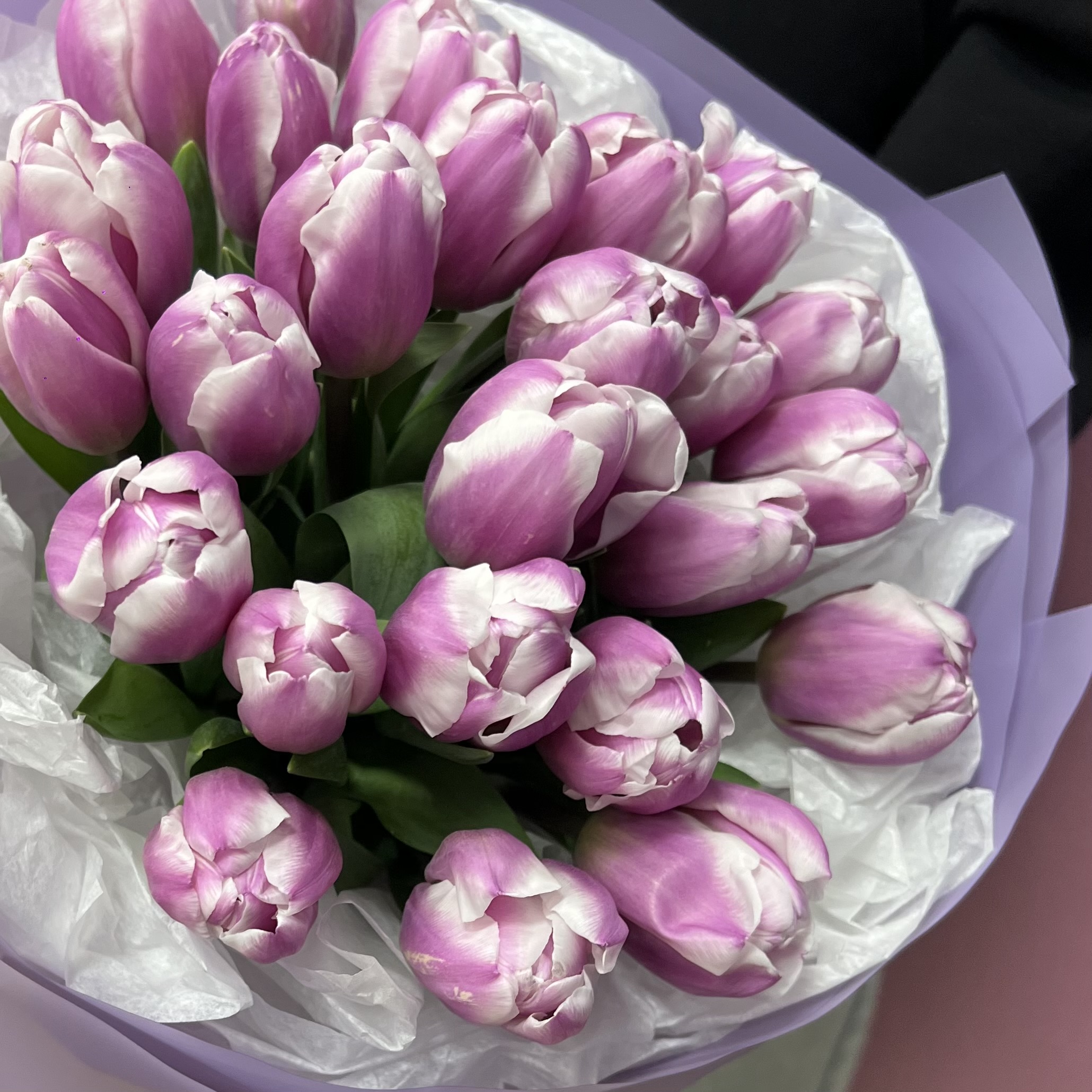 Букет из свежих сиреневых тюльпанов