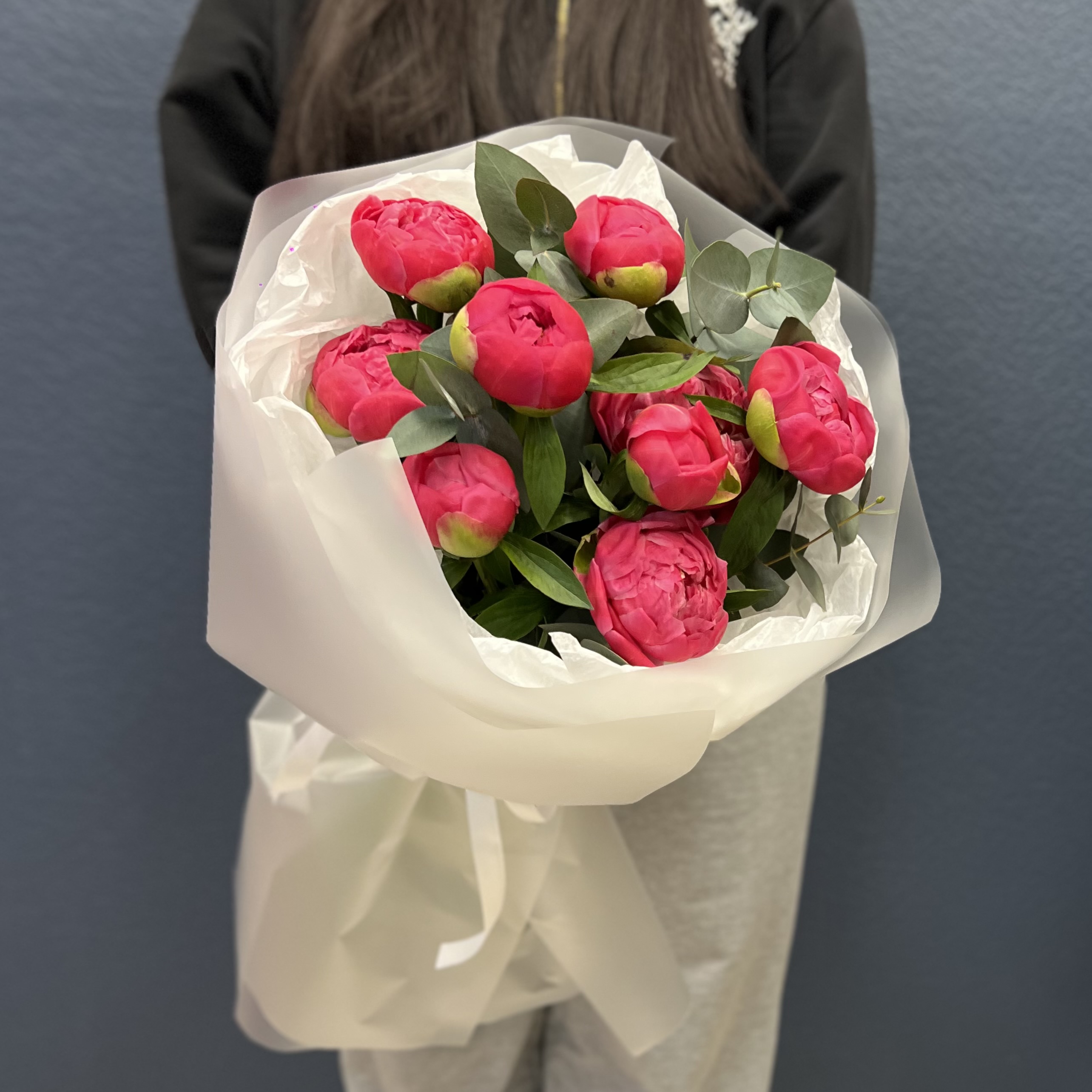 Букет "пион Корал Сансет и эвкалипт" #72