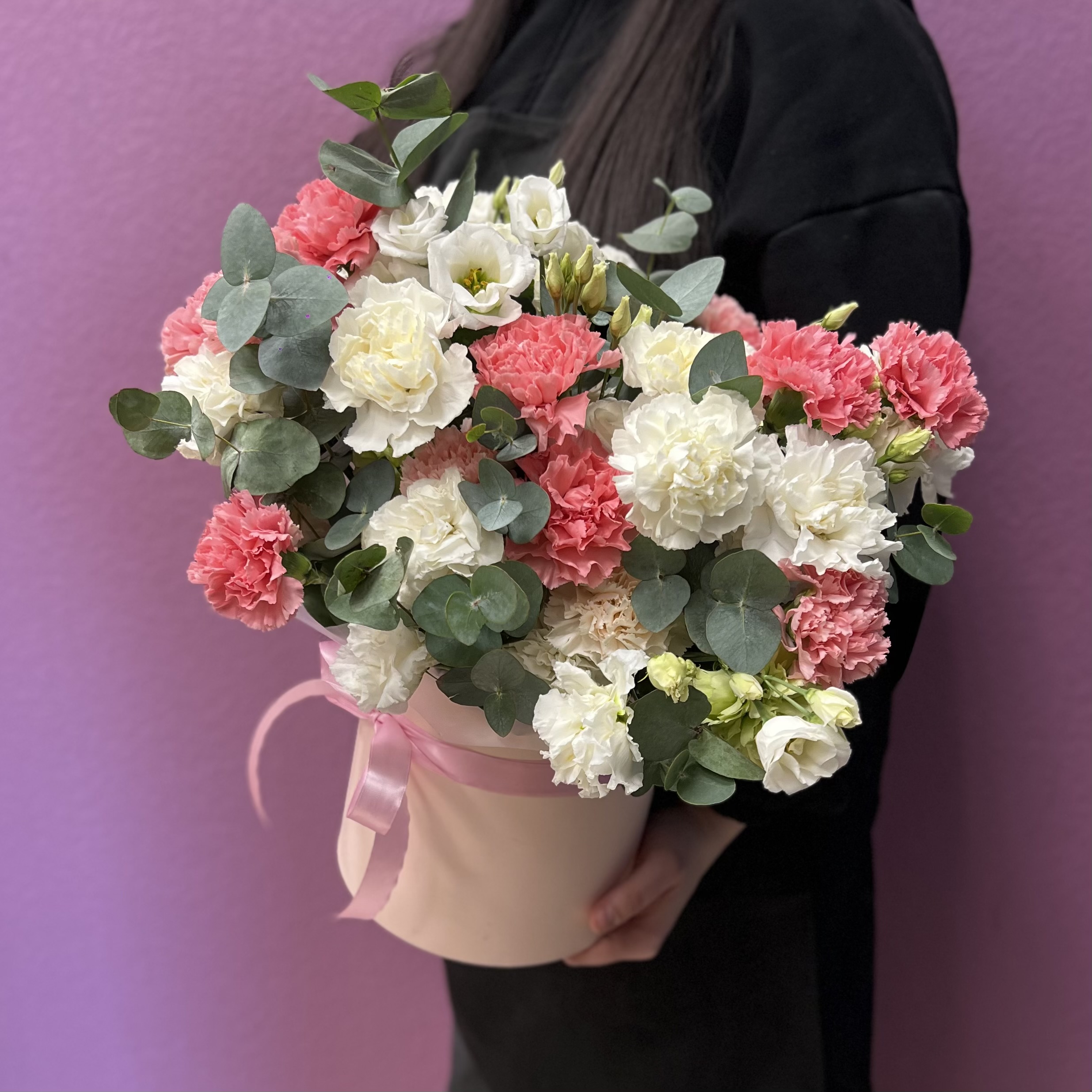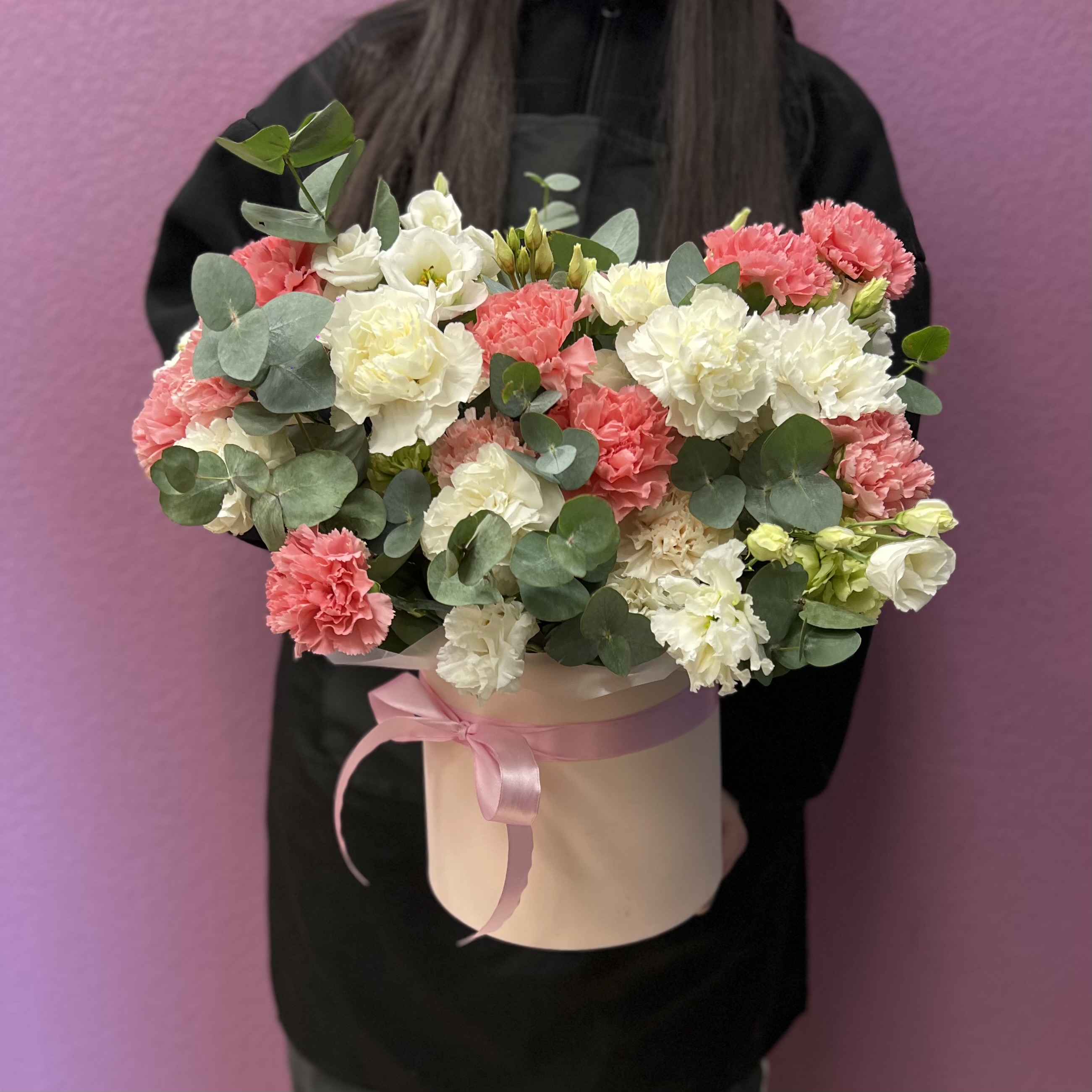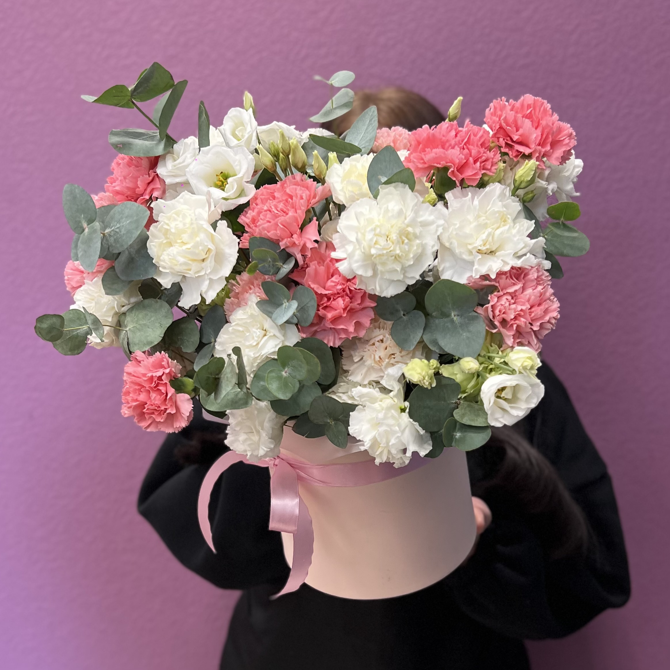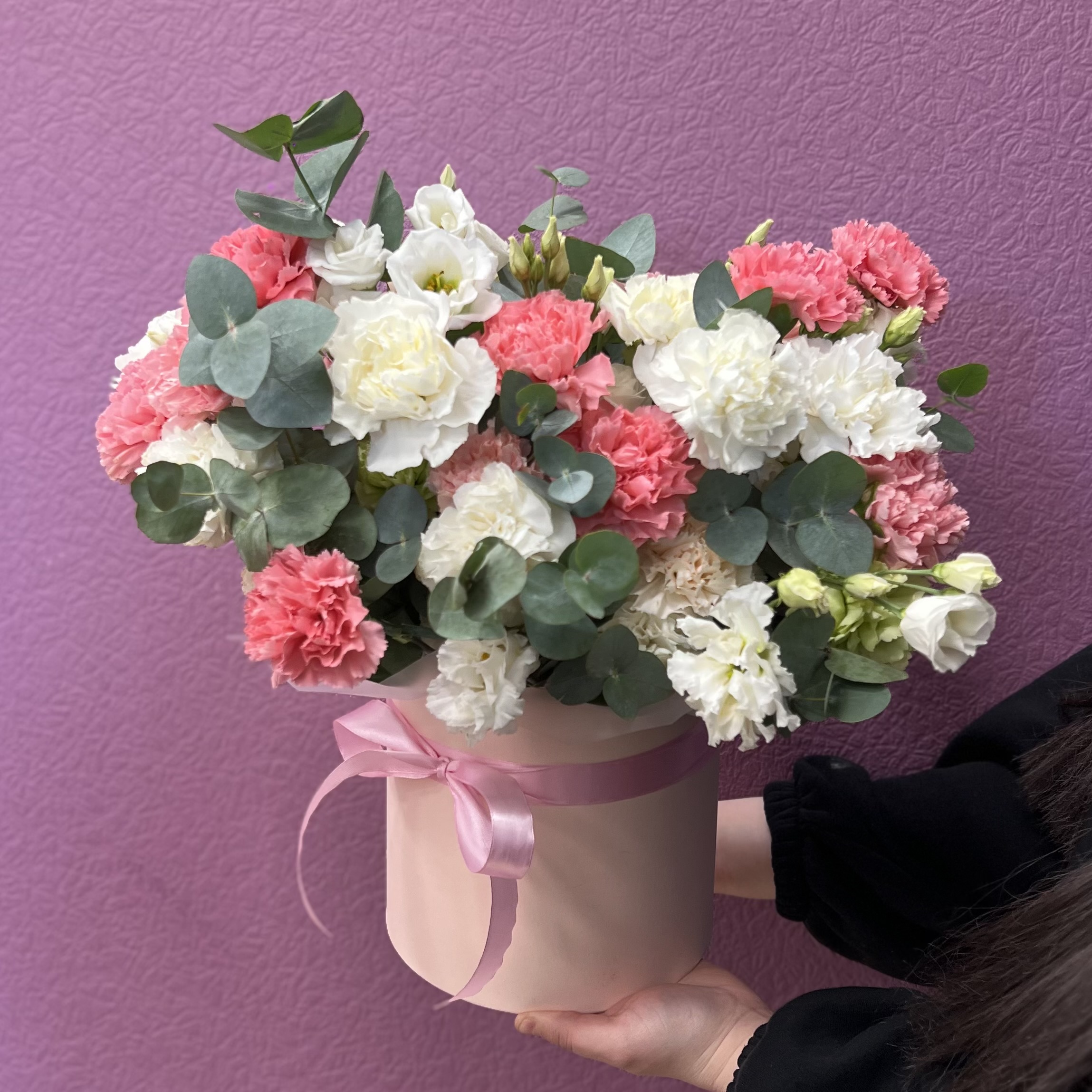 Цветы в коробке — нежный и аккуратный подарок с мягким настроением. Гармоничная композиция выглядит изящно и создаёт ощущение уюта и заботы.